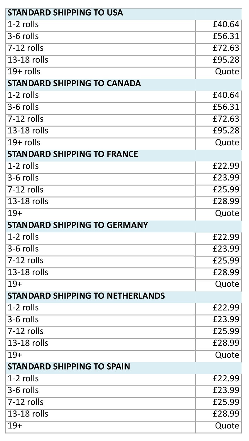 UK delivery is £13.90 and overseas delivery varies as to amounts and delivery address - please see the product images for the shipping cost chart. Shipping options can be selected at checkout.