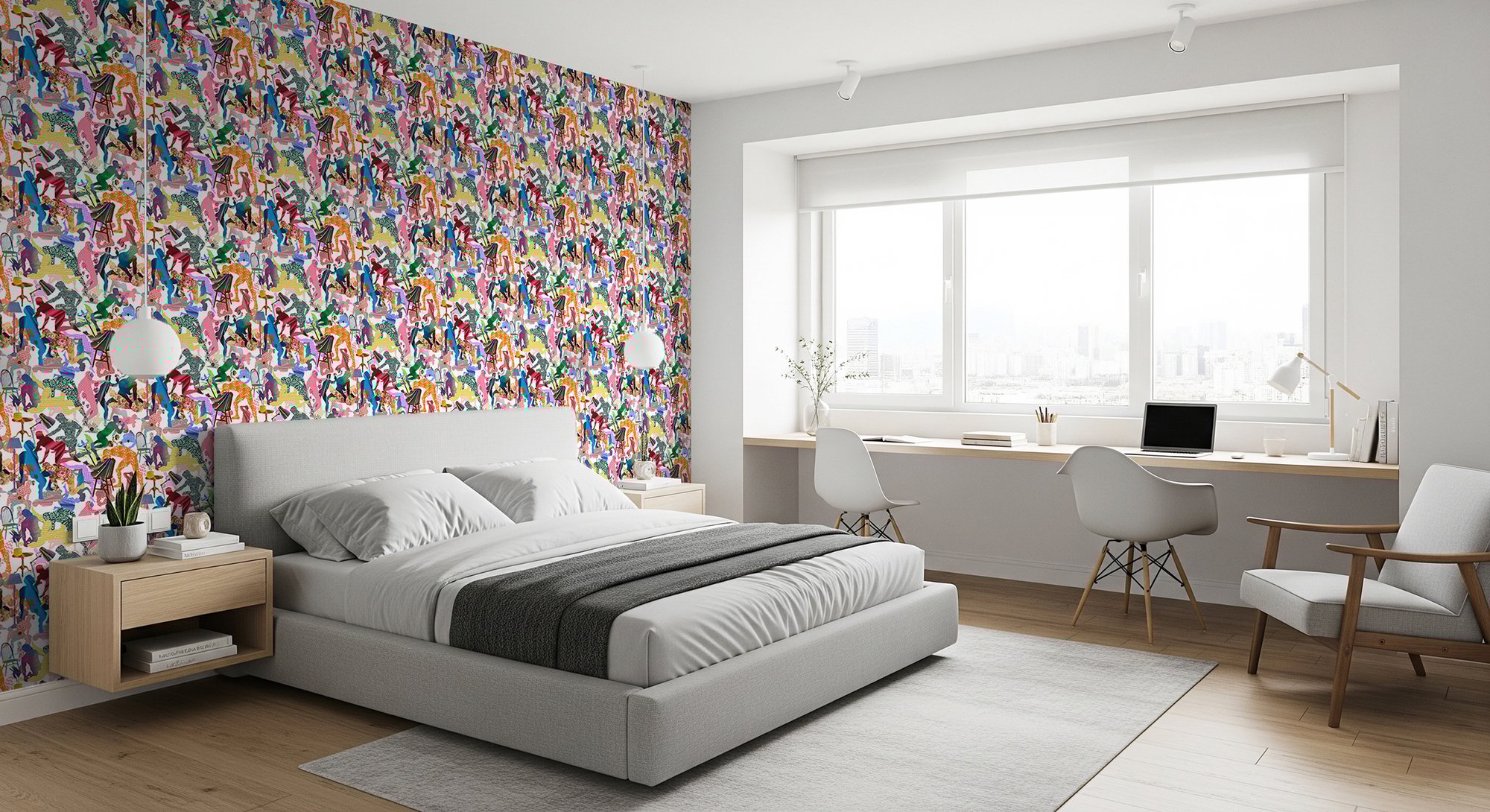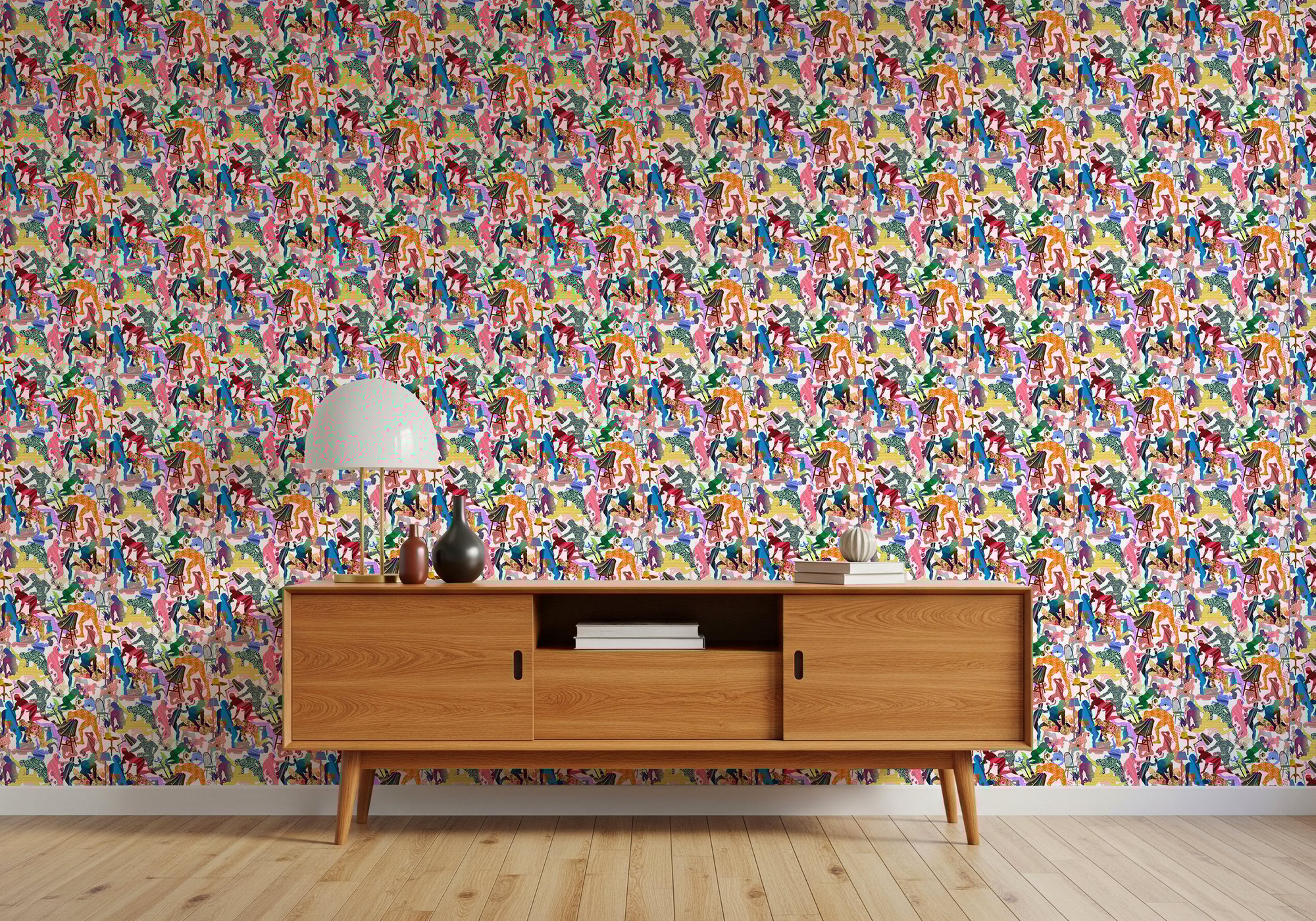 A 10 metre roll of wallpaper printed in Smart Barnett’s ‘After Party' pattern.