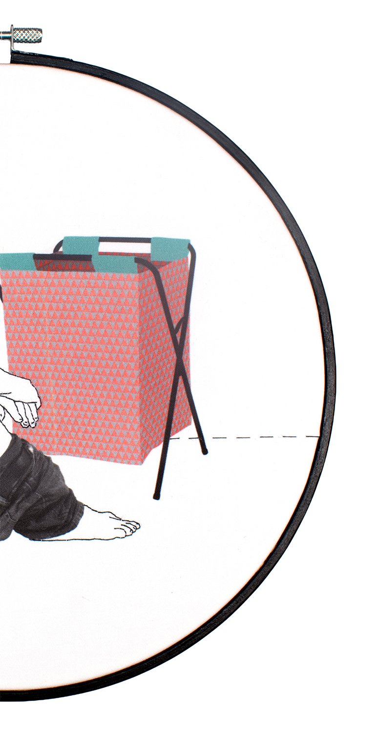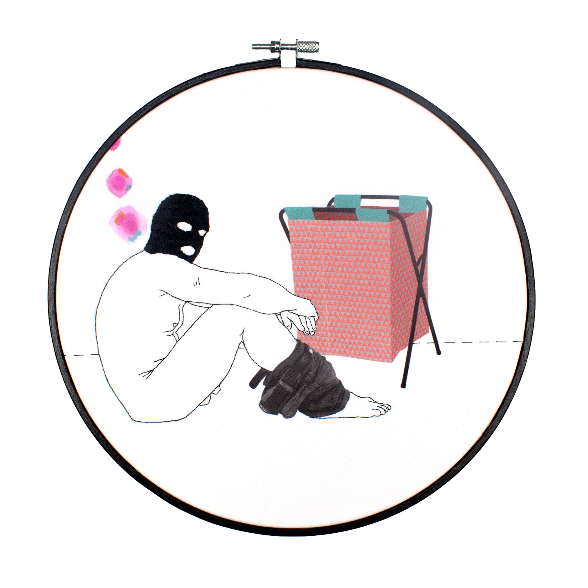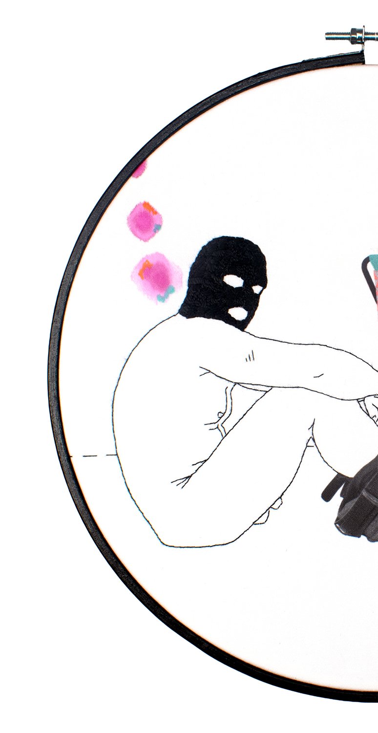 'Anonymous Male With JALL' - Embroidery & digital artwork - in a Hand Painted, wooden embroidery hoop (270mm)