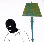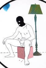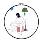 'Anonymous Male With Lamp' - Embroidery & digital artwork - in a Hand Painted, wooden embroidery hoop (270mm)