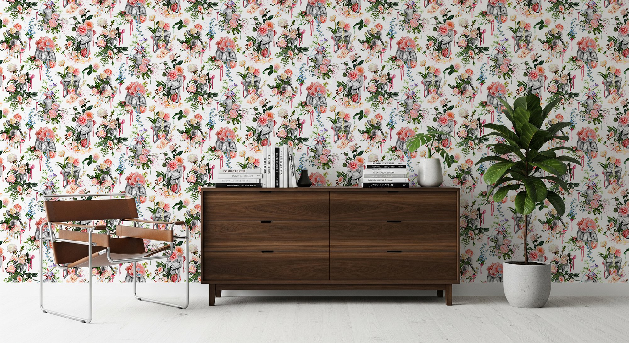 A 10 metre roll of wallpaper printed in Smart Barnett’s ‘LOVE MAXI' pattern.