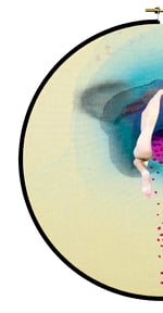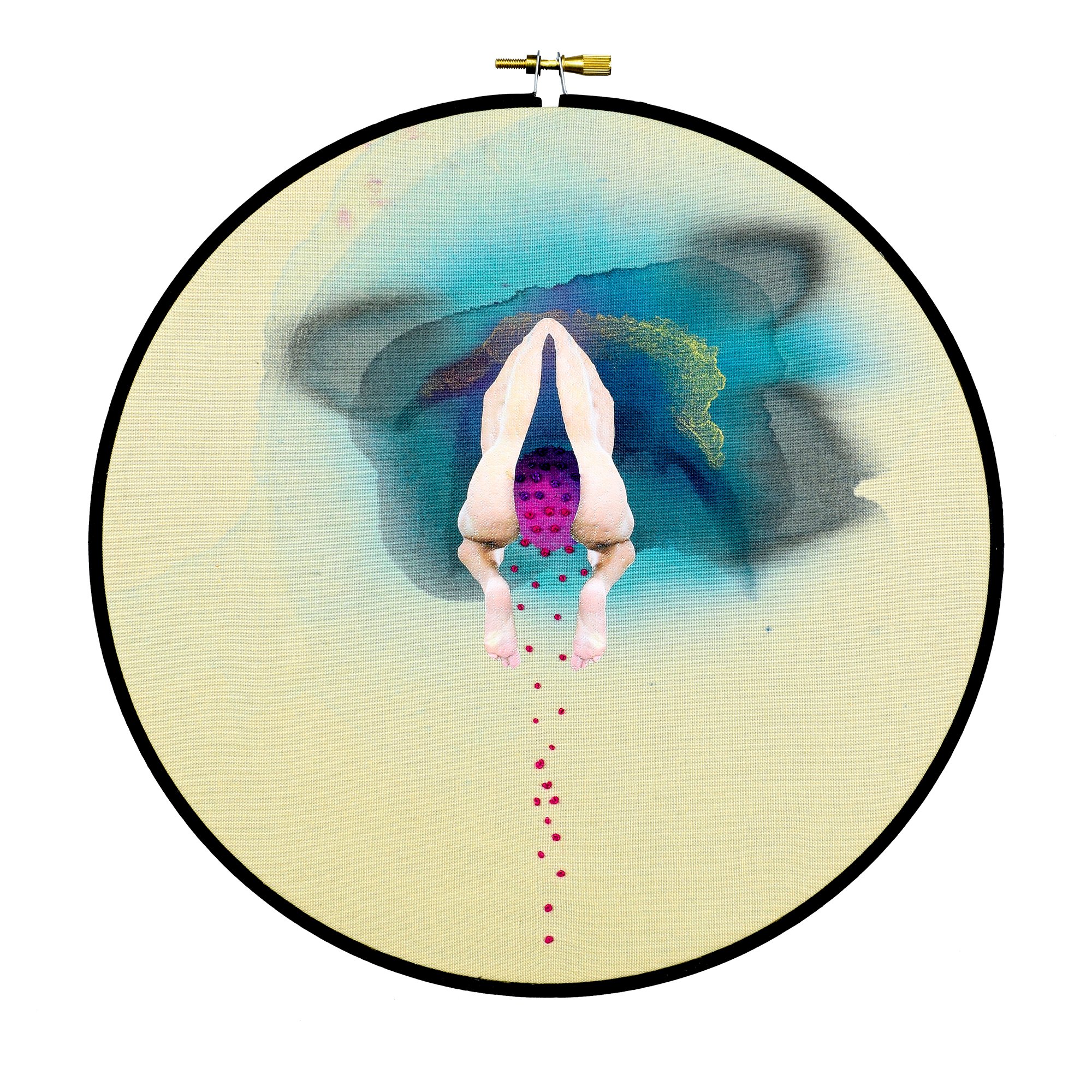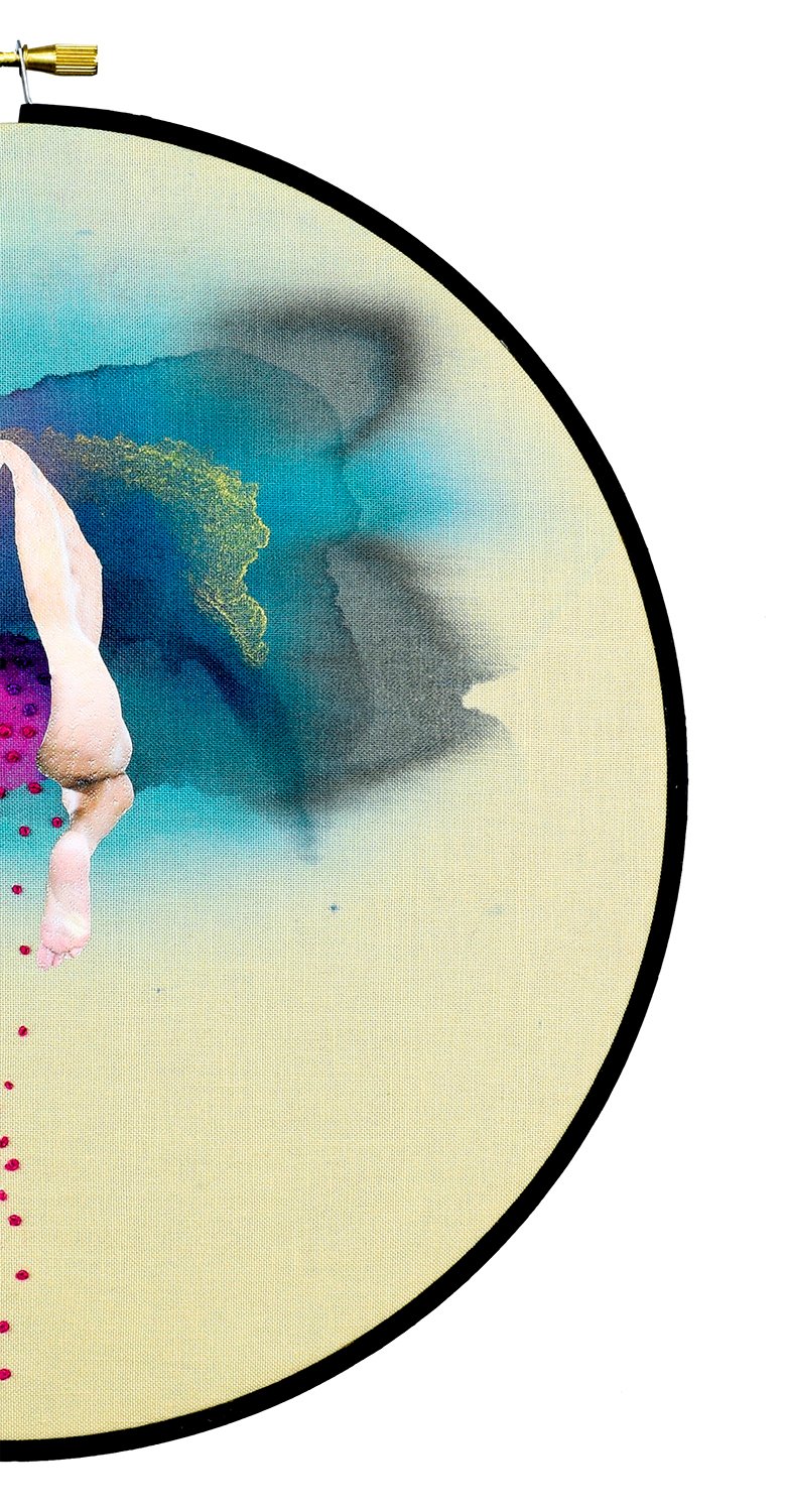 Embroidery, digital artwork & dye - in Hand Painted, wooden embroidery hoop.(240mm)