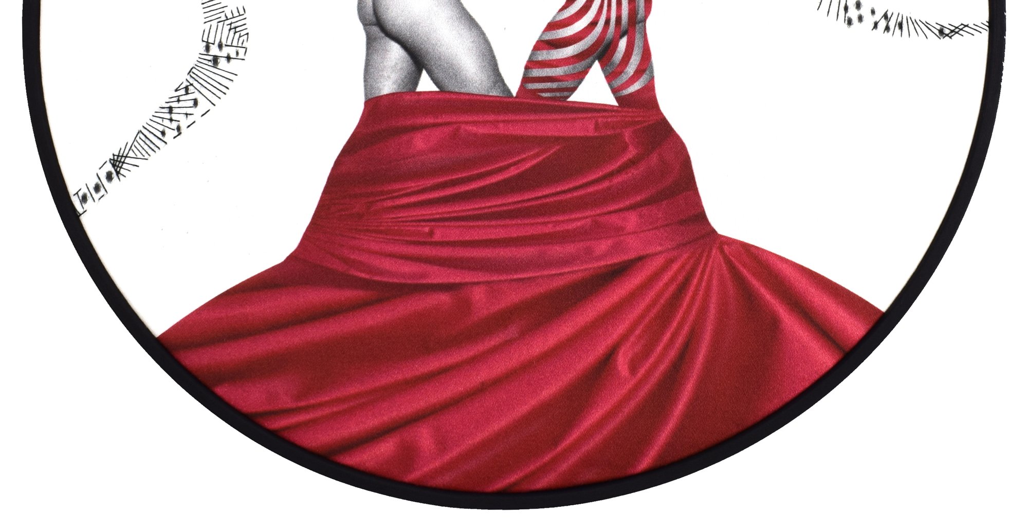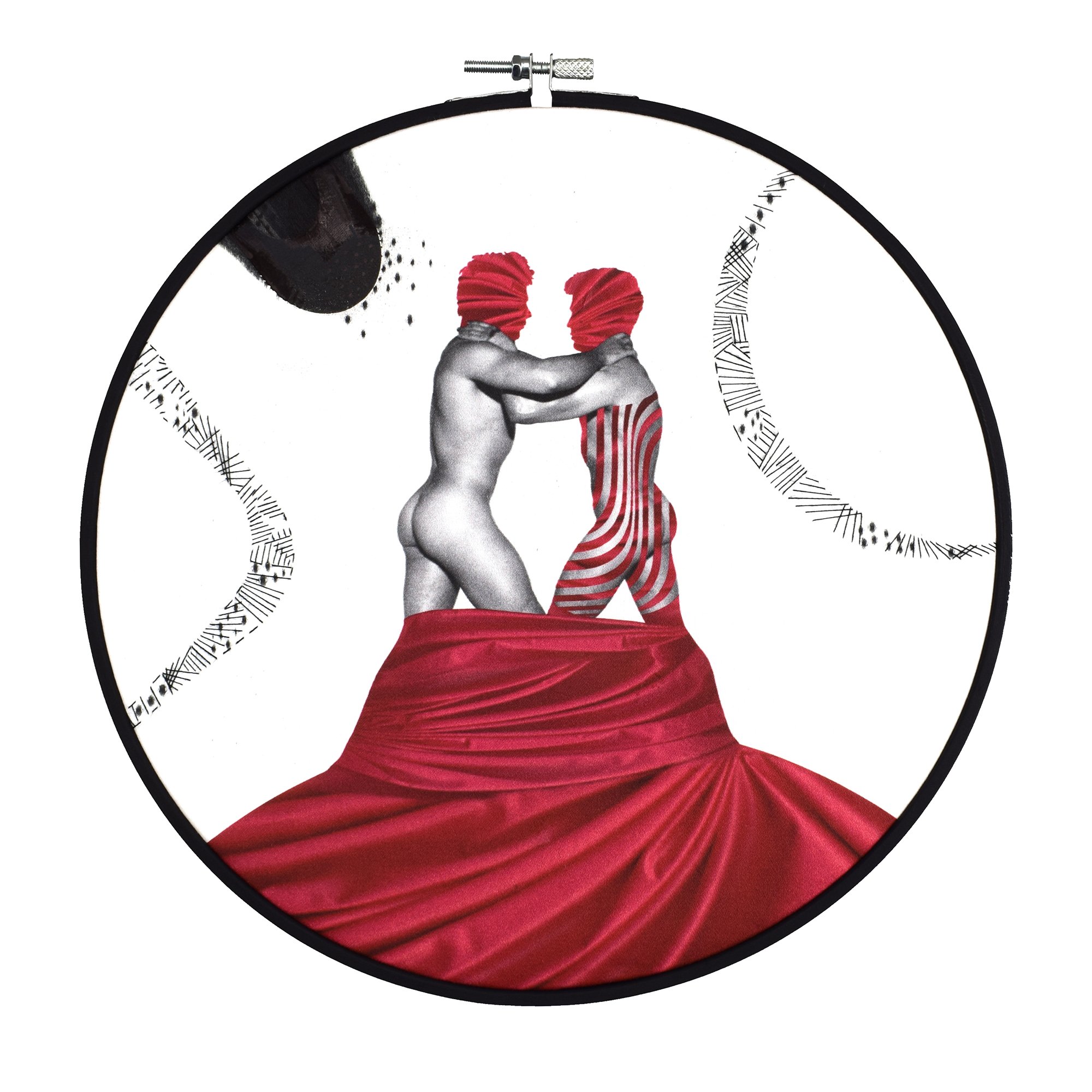 'Some Guys Are Closer Than Others' - Embroidery & digital artwork - in a Hand Painted, wooden embroidery hoop (270mm)