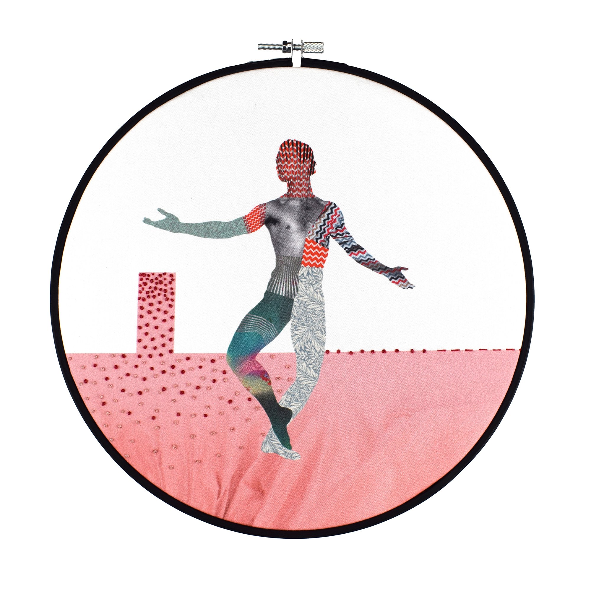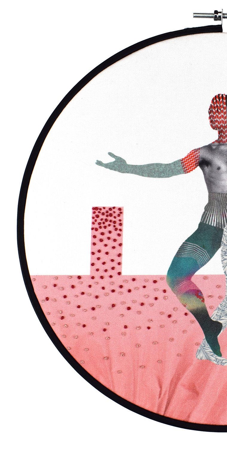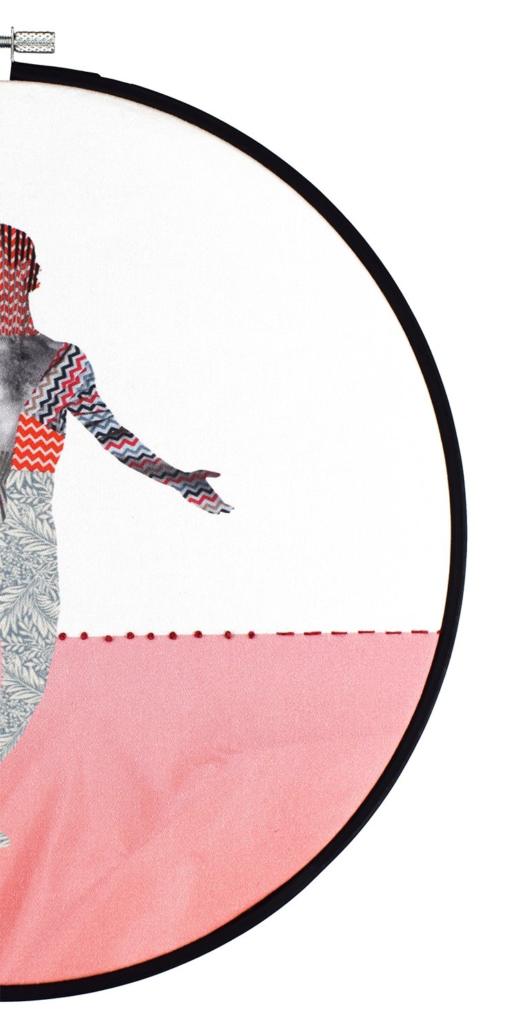 'Some Guys Are Lighter Than Others' - Embroidery & digital artwork - in a Hand Painted, wooden embroidery hoop (270mm)